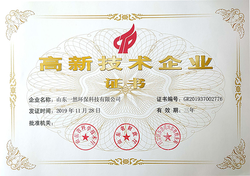 喜報!山東一然環(huán)??萍紭s獲山東省高新技術(shù)企
